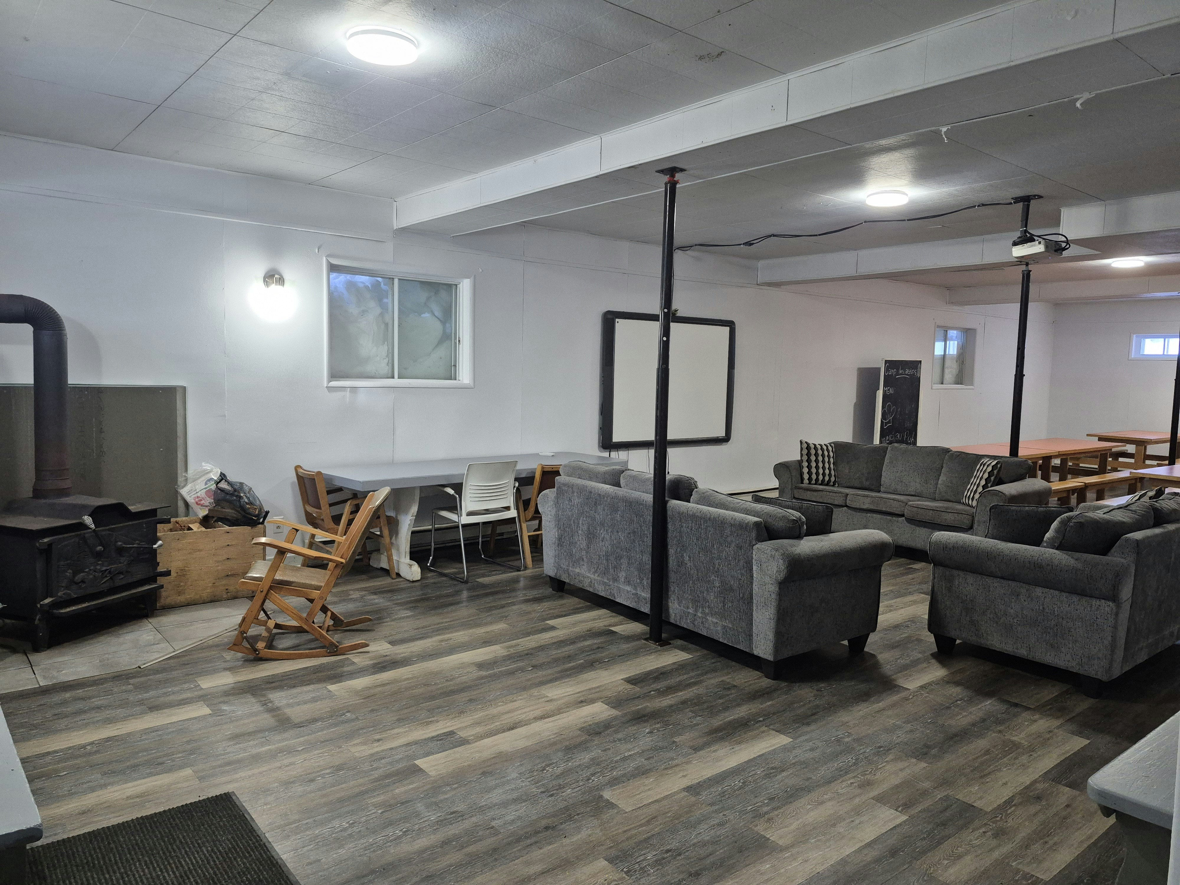 - Un grand salon avec poêle à bois